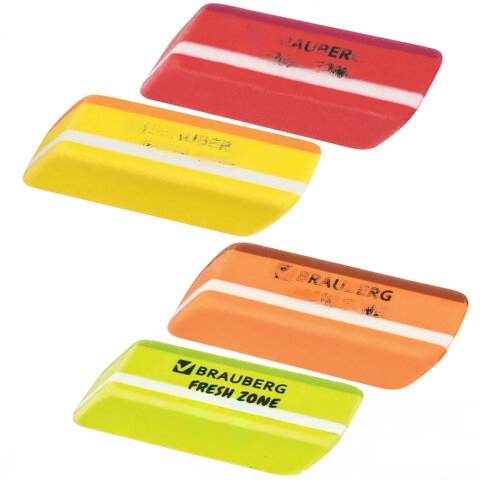 Ластик большой BRAUBERG "Fresh Zone", 60х18х12 мм, цвет ассорти, прямоугольный, скошенный, 228717