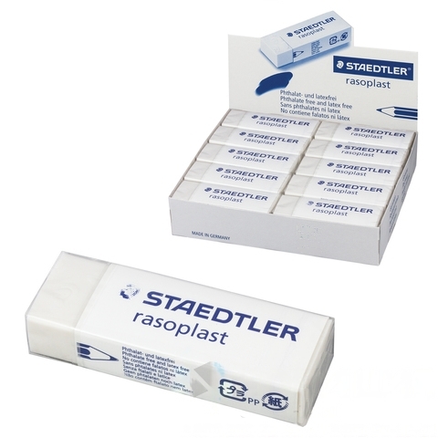 Ластик большой STAEDTLER (Германия) "Rasoplast", 65x23x13 мм, белый, прямоугольный, картонный держатель, 526 B20