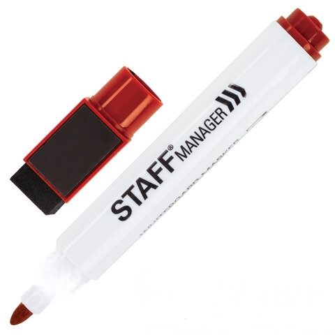 Маркер стираемый для белой доски на магните со стирателем, КРАСНЫЙ, STAFF "Manager", 3 мм, 152003