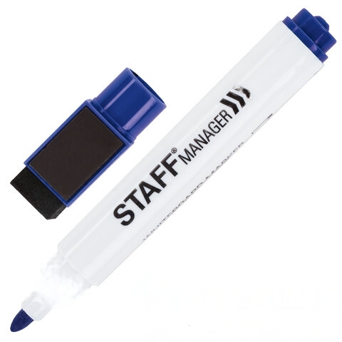 Маркер стираемый для белой доски на магните со стирателем, СИНИЙ, 3 мм, STAFF "Manager", 152004