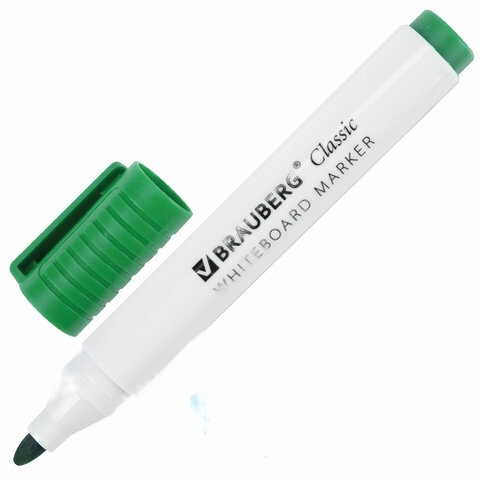 Маркер стираемый для белой доски ЗЕЛЕНЫЙ, BRAUBERG "CLASSIC", 3 мм, с клипом, 152116