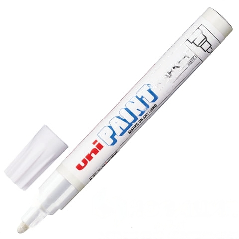 Маркер-краска лаковый (paint marker) UNI (Япония) "Paint", 2,2-2,8 мм, БЕЛЫЙ, нитро-основа, алюминиевый корпус, PX-20(L) WHITE