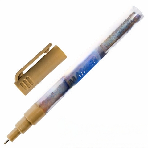 Высококачественные чернила золотого цвета с лаковым эффектом идеально подходят для нанесения долговечной маркировки на любые поверхности. Благодаря усиленной формуле чернил краска ложится ровным слоем, полностью закрашивая поверхность. С помощью игольчатого прочного наконечника, выполненного из полиацетали с шириной линии письма 1 мм, можно легко наносить тонкие линии. Быстросохнущие чернила предотвращают смазывание в процессе маркировки. После высыхания надписи становятся термо- и водостойкими, а также устойчивыми к выцветанию и механическому истиранию. Отлично подходит для маскировки бытовых дефектов, таких как царапины и сколы. Надежный помповый механизм подачи чернил предотвращает вытекание и разбрызгивание в процессе использования, а также преждевременное высыхание. Корпус маркера выполнен из алюминия, внутри находятся 2 металлических шарика для взбалтывания краски. Цвет колпачка соответствует цвету чернил.