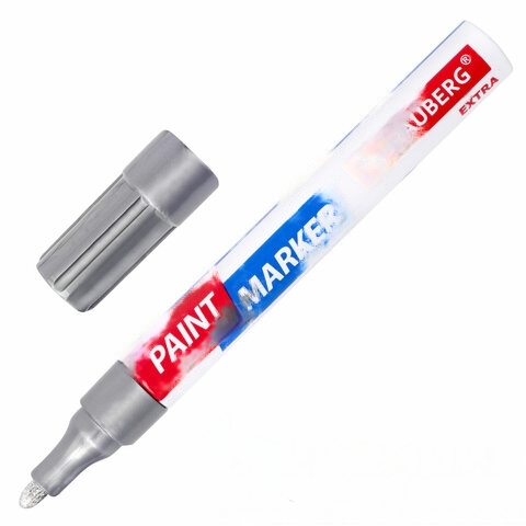 Маркер-краска лаковый EXTRA (paint marker) 4 мм, СЕРЕБРЯНЫЙ, УСИЛЕННАЯ НИТРО-ОСНОВА, BRAUBERG, 151982