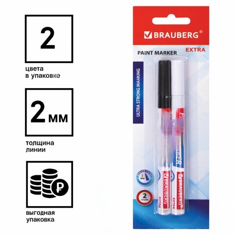 Маркер-краска лаковый EXTRA (paint marker) 2 мм, НАБОР 2 цвета, БЕЛЫЙ/ЧЕРНЫЙ, УСИЛЕННАЯ НИТРО-ОСНОВА, BRAUBERG, 151993