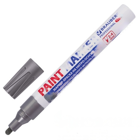 Маркер-краска лаковый (paint marker) 4 мм, СЕРЕБРЯНЫЙ, НИТРО-ОСНОВА, алюминиевый корпус, BRAUBERG PROFESSIONAL PLUS, 151448