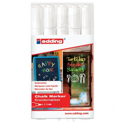 Маркеры меловые EDDING 4095 НАБОР 5 шт., 2-3 мм, БЕЛЫЕ, влагостираемые, для гладких поверхностей, E-4095/5S/49