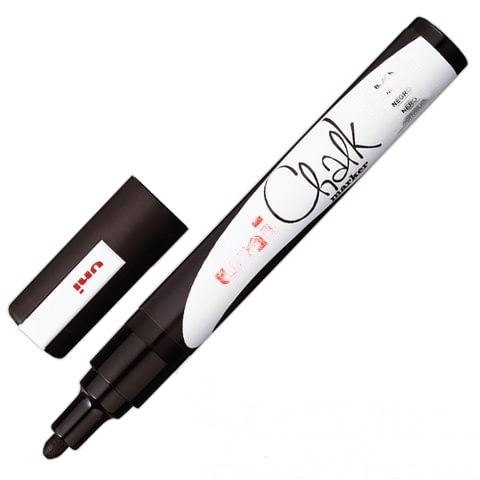 Маркер меловой UNI "Chalk", 1,8-2,5 мм, ЧЕРНЫЙ, влагостираемый, для гладких поверхностей, PWE-5M BLACK