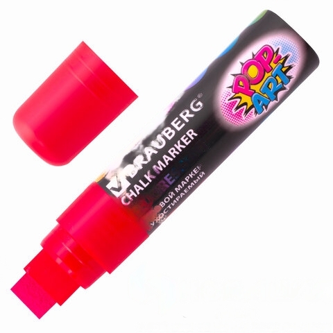 Маркер меловой "POP-ART" КРАСНЫЙ, 15 мм, стираемый, для гладких поверхностей, BRAUBERG, 151539