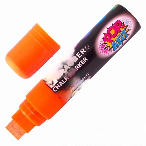 Маркер меловой "POP-ART" ОРАНЖЕВЫЙ, 15 мм, стираемый, для гладких поверхностей, BRAUBERG, 151541