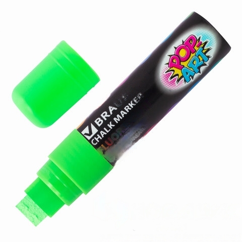 Маркер меловой "POP-ART" ЗЕЛЕНЫЙ, 15 мм, стираемый, для гладких поверхностей, BRAUBERG, 151542