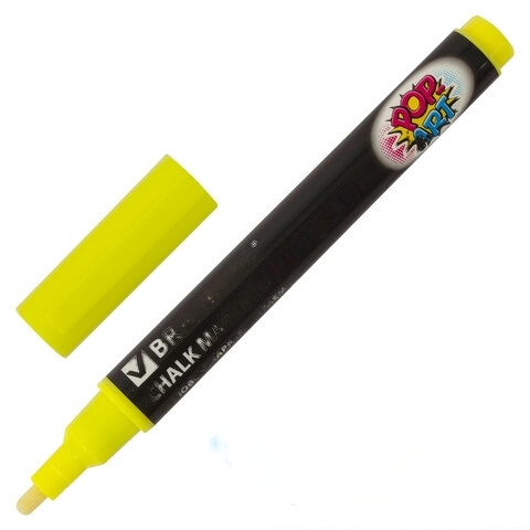Маркер меловой "POP-ART" ЖЕЛТЫЙ, 3,5 мм, стираемый, для гладких поверхностей, BRAUBERG, 151520