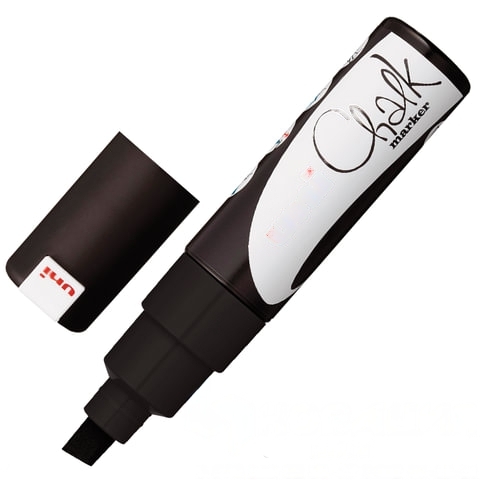 Маркер меловой UNI "Chalk", 8 мм, ЧЕРНЫЙ, влагостираемый, для гладких поверхностей, PWE-8K BLACK