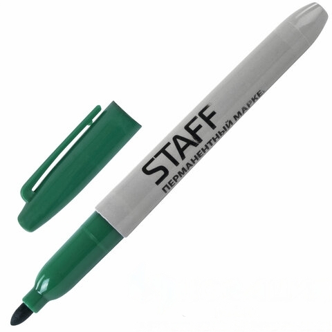 Маркер перманентный (нестираемый) STAFF "EVERYDAY", ЗЕЛЕНЫЙ, эргономичный корпус, круглый наконечник 2 мм, 151236
