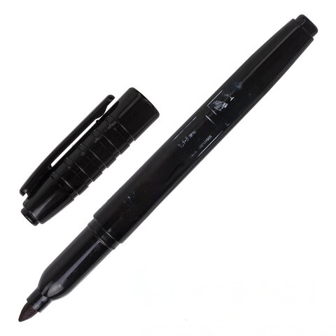 Маркер перманентный (нестираемый) BRAUBERG, ЧЕРНЫЙ, круглый наконечник, 1,5-3 мм, с клипом, 151629