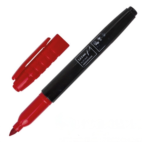Маркер перманентный (нестираемый) BRAUBERG, КРАСНЫЙ, круглый наконечник, 1,5-3 мм, с клипом, 151631