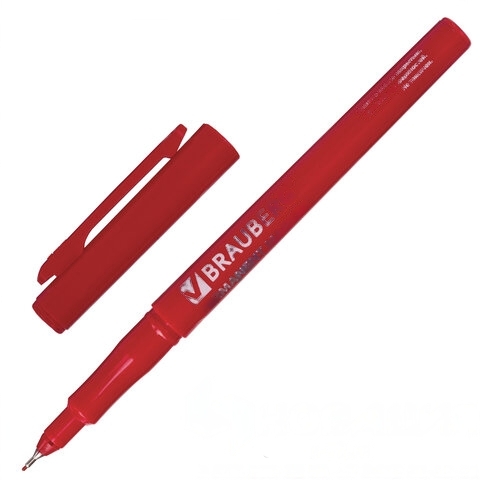 Маркер перманентный BRAUBERG "Super Slim", КРАСНЫЙ, тонкий металлический наконечник, 0,8 мм, 151634