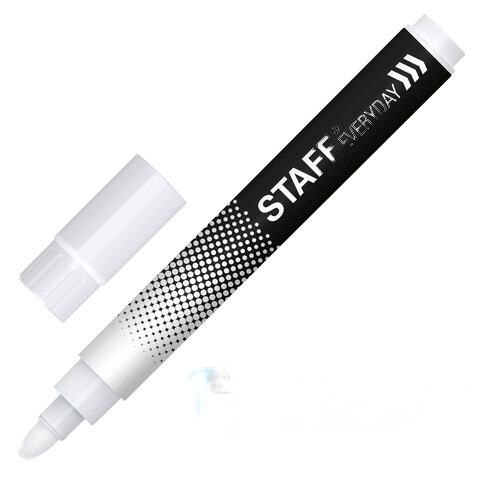 Маркер перманентный STAFF EVERYDAY PM-200, БЕЛЫЙ, круглый наконечник 3 мм, 152202