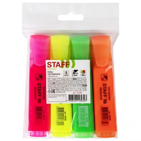 Набор текстовыделителей STAFF "EVERYDAY" 4 шт., АССОРТИ, линия 1-5 мм, 151243
