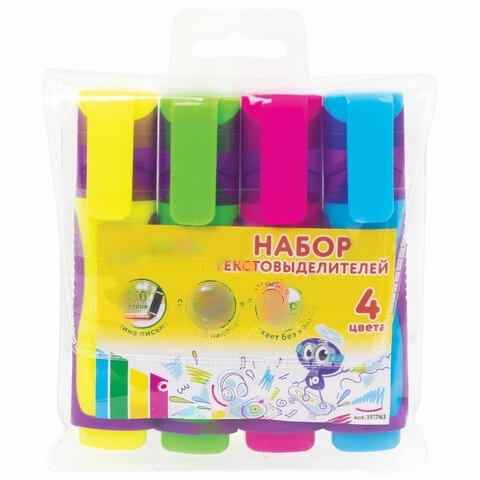 Набор текстовыделителей ЮНЛАНДИЯ 4 шт., АССОРТИ, "ELASTIC", прорезиненный корпус, линия 1-5 мм, 151763