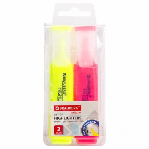 Набор текстовыделителей BRAUBERG 2 шт., ЖЕЛТЫЙ/РОЗОВЫЙ, "SPECIAL", линия 1-5 мм, 151899