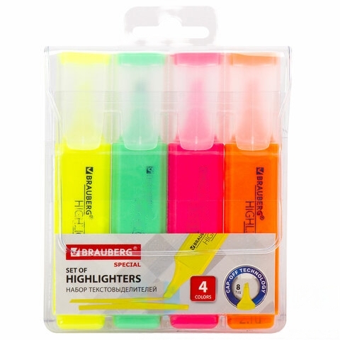 Набор текстовыделителей BRAUBERG 4 шт., АССОРТИ, "SPECIAL", линия 1-5 мм, 151900