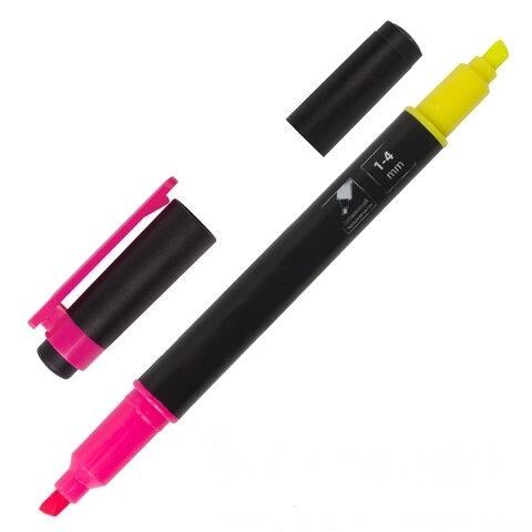 Текстовыделитель двусторонний BRAUBERG, ЖЕЛТЫЙ/РОЗОВЫЙ, линия 1-4 мм, 150840