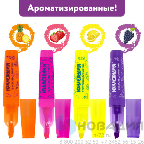 Текстовыделитель ЮНЛАНДИЯ "ФРУКТЫ", АССОРТИ В ДИСПЛЕЕ, АРОМАТИЗИРОВАННЫЙ, линия 1-5 мм, 151909