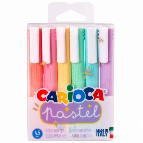 Набор текстовыделителей CARIOCA (Италия) 6 шт., АССОРТИ, "Pastel", линия 1-5 мм, 43033