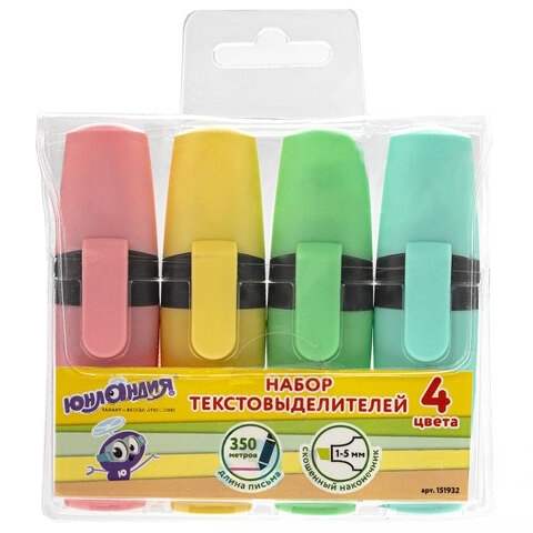 Набор текстовыделителей ЮНЛАНДИЯ 4 шт., ЮНЛАНДИЯ "КЛАССИКА ПАСТЕЛЬ", линия 1-5 мм, 151932