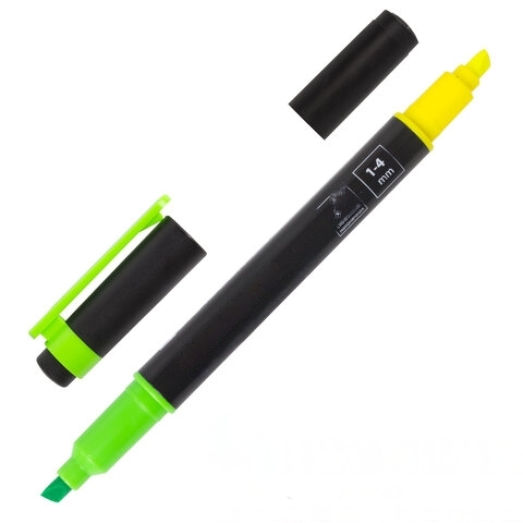 Текстовыделитель двусторонний BRAUBERG, ЖЕЛТЫЙ/ЗЕЛЕНЫЙ, линия 1-4 мм, 150841