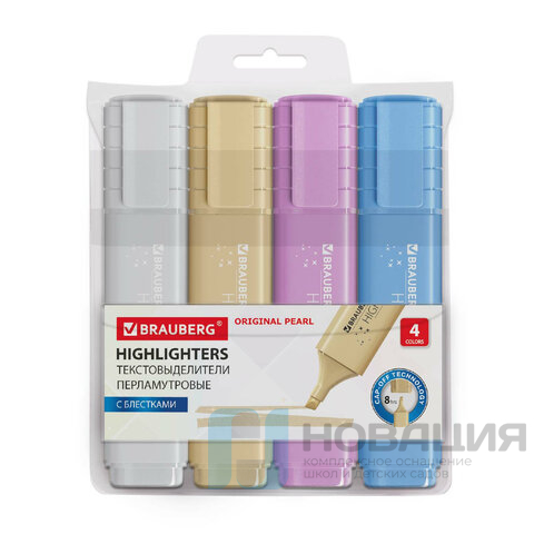 Набор текстовыделителей перламутровых 4 ЦВЕТА, BRAUBERG ORIGINAL PEARL, линия 1-5 мм, 152429
