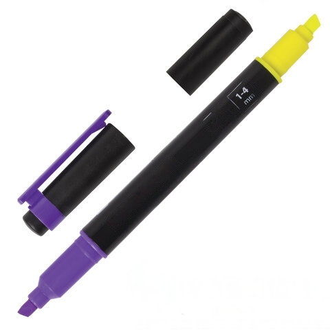 Текстовыделитель двусторонний BRAUBERG, ЖЕЛТЫЙ/ФИОЛЕТОВЫЙ, линия 1-4 мм, 150844