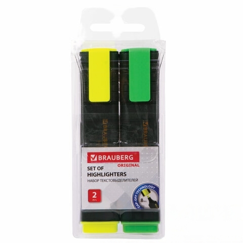 Набор текстовыделителей BRAUBERG 2 шт., ЖЕЛТЫЙ/ЗЕЛЕНЫЙ, "ORIGINAL", линия 1-5 мм, 151687