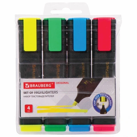 Набор текстовыделителей BRAUBERG 4 шт., АССОРТИ, "ORIGINAL", линия 1-5 мм, 151689