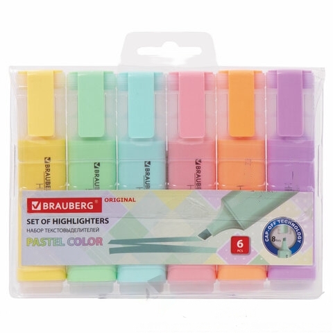 Набор текстовыделителей BRAUBERG 6 шт., АССОРТИ, "ORIGINAL PASTEL", линия 1-5 мм, 151698