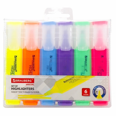 Набор текстовыделителей BRAUBERG 6 шт., АССОРТИ, "SPECIAL", линия 1-5 мм, 151901