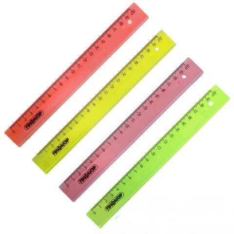 Линейка пластиковая 20 см, ПИФАГОР, прозрачная, неоновая, ассорти, 210605