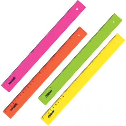 Линейка пластиковая 30 см, ПИФАГОР, непрозрачная, неоновая, ассорти, 210608