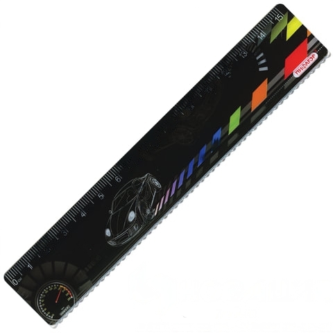 Линейка пластиковая 15 см, ПИФАГОР "Авто", цветная печать, с волнистым краем, европодвес, 210634