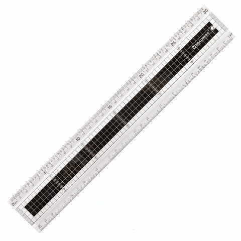 Линейка пластик 30 см BRAUBERG "EXTRA", прочная, прозрачная, черно-белая печать, европодвес, 210744