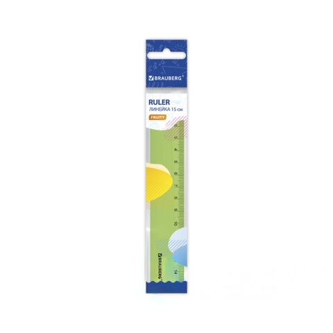 Линейка пластиковая 15 см BRAUBERG "FRUITY", тонированная, ассорти, 210765