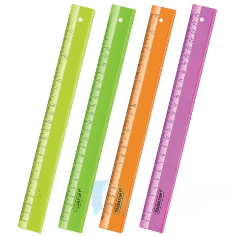 Линейка пластиковая 25 см ПИФАГОР, прозрачная, неоновая, ассорти, 210791