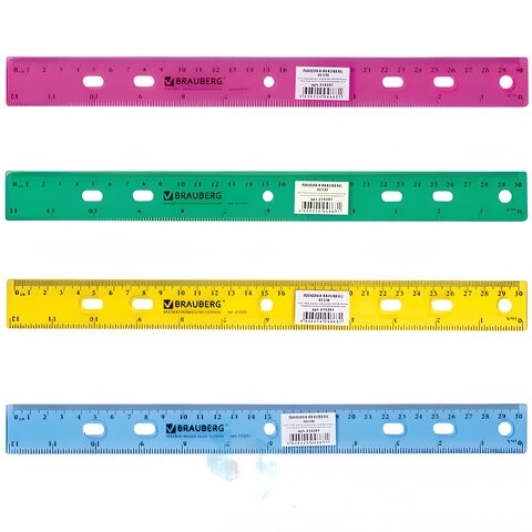 Линейка пластиковая 30 см, BRAUBERG "Crystal", тонированная, ассорти, 210291