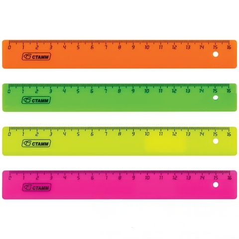 Линейка пластиковая 16 см, СТАММ, флуоресцентная, ассорти, 4 цвета, ЛН01