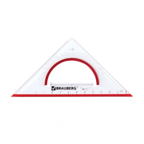 Треугольник пластиковый, угол 45, 13 см, BRAUBERG "Crystal", с транспортиром, прозрачный, с выделенной шкалой, 210293