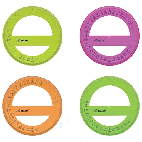 Транспортир 10 см, 360 градусов, пластиковый, СТАММ, тонированный, прозрачный, ассорти, ТР41