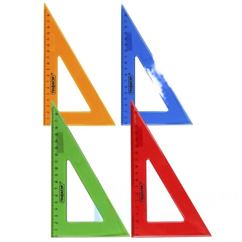 Треугольник пластиковый 30*18 см ПИФАГОР, непрозрачный, ассорти, 210794