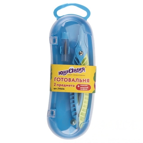 Готовальня ЮНЛАНДИЯ, 2 предмета: пластиковый циркуль 120 мм, грифель, пенал, 210656