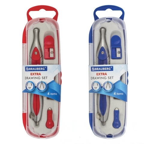 Готовальня BRAUBERG "Extra", 4 предмета (циркуль 120 мм, точилка, отвёртка, грифель), 210686